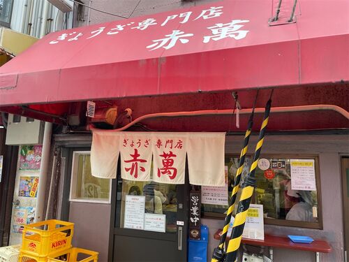 神戸の餃子。赤萬ははじめてだ。 餃子2人前と小瓶をください。 ビールはいま出しますか?と聞いてくれて嬉しい。 餃子と一緒のタイミングでお願いします。 いまだと餃子来る前に終わるからね。 タレでも作って待ってますので。 これでいいのかな? はい来た…